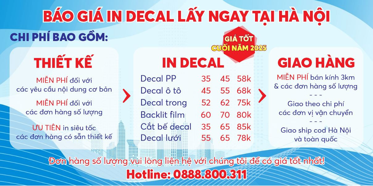 Báo Giá In Decal Hà Nội (Liên hệ để nhận giá tốt)